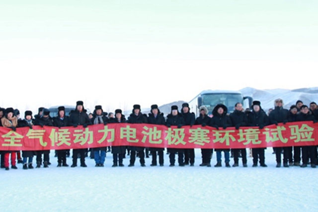 孙逢春院士(左三)与王朝阳教授(左二)在极寒环境试验现场 面向2022年冬奥会新能源汽车应用,为解决电动汽车在极寒环境充电困...