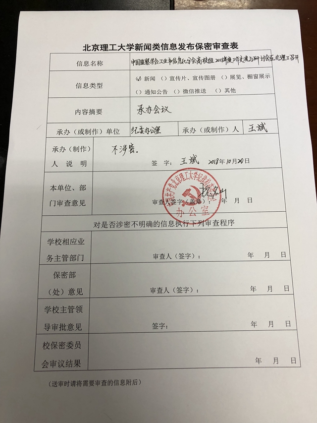 中国监察学会工业和信息化分会高校组2018年度工作交流与研讨会在北理工...