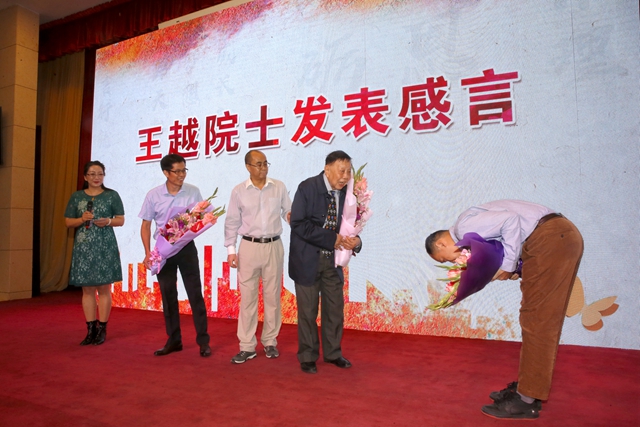 这是在2018年北理工庆祝第34个教师节暨教师表彰大会上, 我们广大教师要像王越先生一样, 学校向王越先生隆重颁发了新设立的