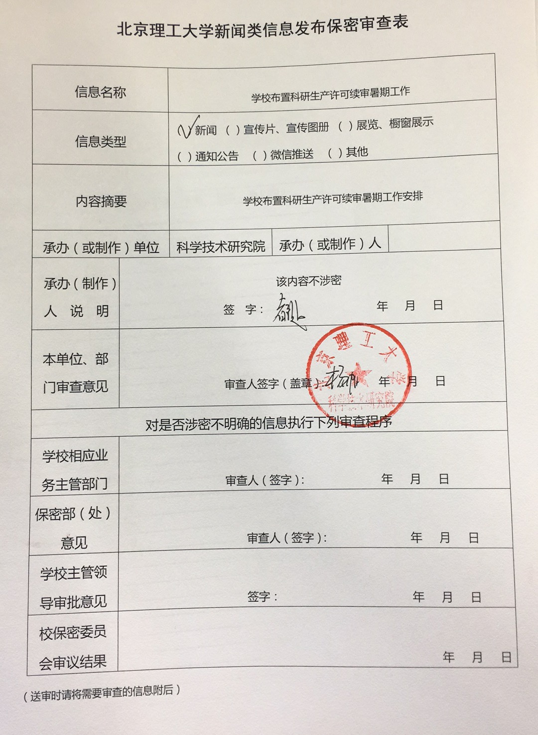 北理工布置科研生产许可续审暑期工作