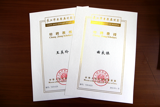 近日,教育部公布了2013、2014年度“长江学者奖励计划”入选名单,我校曲良体教授和王美玲教授当选2013、2014年度“长江学者奖...