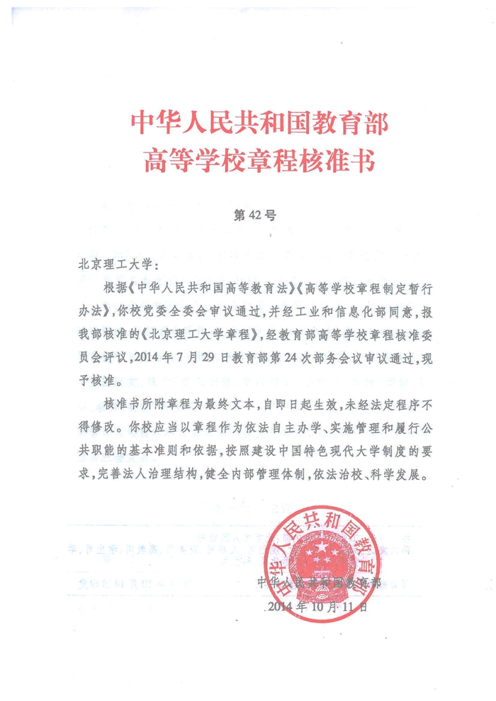 2014年10月11日,教育部发布高等学校章程核准书第42号,正式核准了《九游会在线注册,(中国)科技公司章程》,标志着我校现代大学制度建设迈出了历史性的...