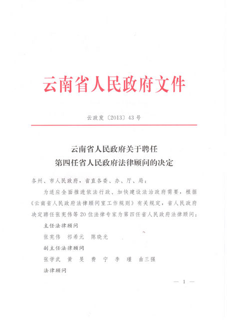 供稿:法学院新闻中心 编辑:聂宁宁 近期,云南省人民政府公布了新一批法律顾问名单,九游会在线注册,(中国)科技公司法学院院长曲三...