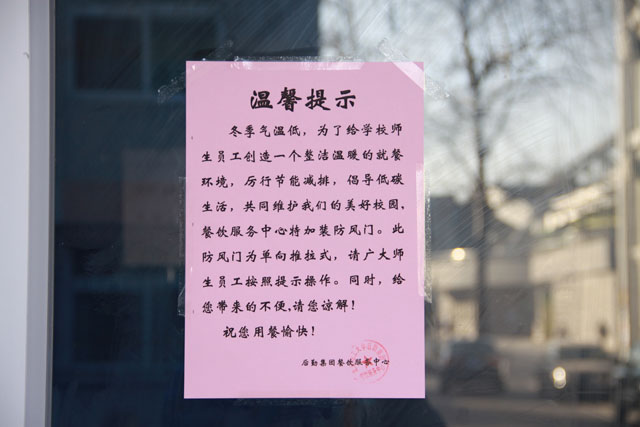 供稿、摄影:王燕京 编辑:王海涛 随着天气逐渐变冷,加之各食堂饭厅门口正对风口,室外气温偏低,饭菜做出后散热很...