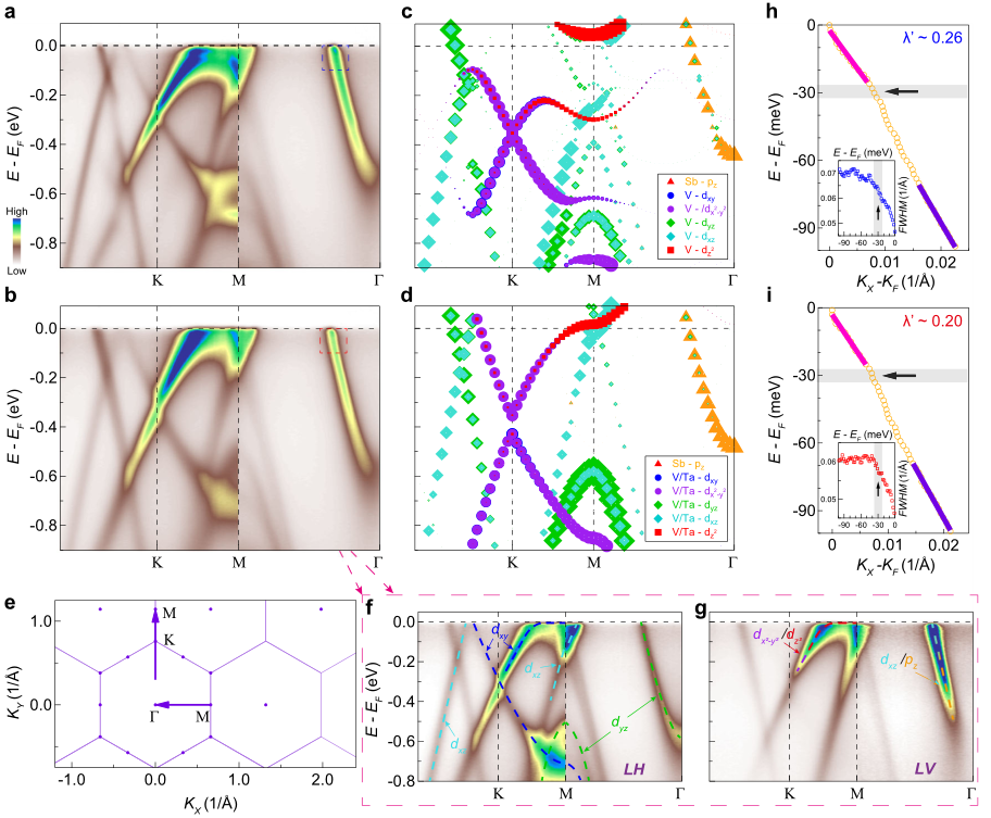 图1. 25K下CsV3Sb5和CsV2.6Ta0.4Sb5的能带结构图