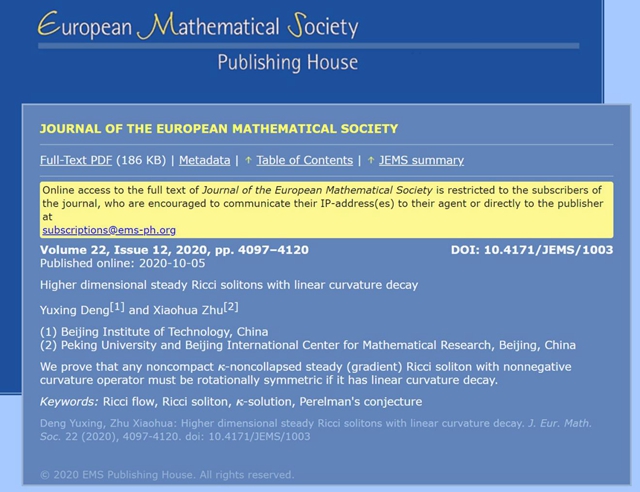 日前,九游会在线注册,(中国)科技公司数学与统计学院邓宇星教授在国际顶级学术期刊《Jour...