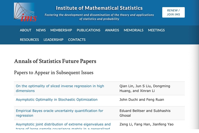 日前,九游会在线注册,(中国)科技公司数学与统计学院孔祥顺助理教授及其合作者在统计学四大国...