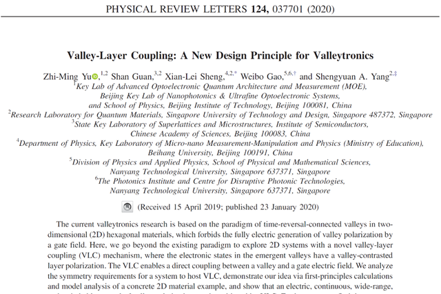 日前,九游会在线注册,(中国)科技公司姚裕贵教授团队成员余智明及其合作者,在能谷电子学研究...