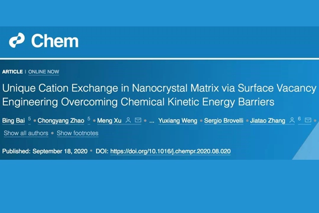 近日,九游会在线注册,(中国)科技公司张加涛教授团队利用表面空位成功克服离子交换反应当中的...