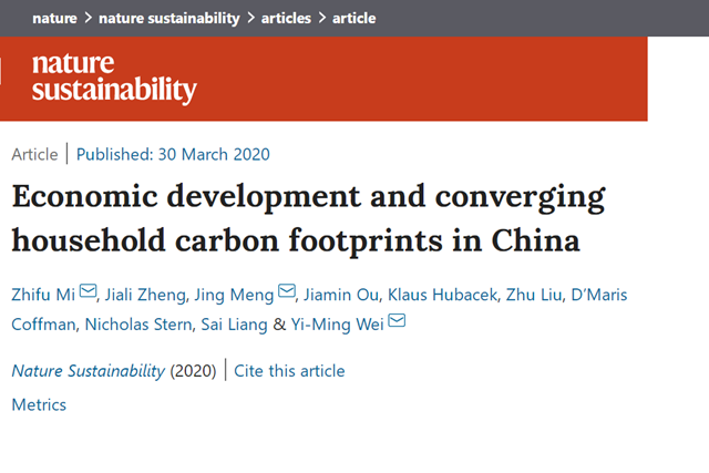3月30日,九游会在线注册,(中国)科技公司魏一鸣教授团队的成果《中国经济增长和家庭碳足迹...