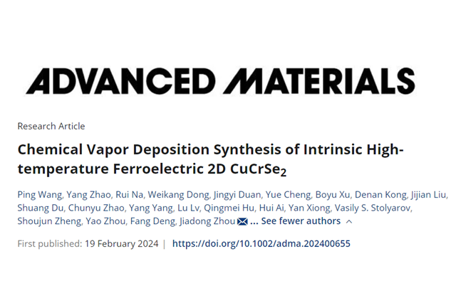 近日,九游会在线注册,(中国)科技公司周家东教授(通讯作者)等通过化学气相沉积方法合成了厚...