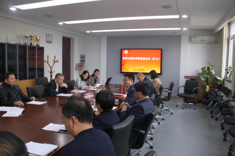 2018年11月28日,管理与经济学院在主楼345会议室召开了党委会议(扩大),学院党委书记王兆华、院长魏一鸣等党委委员,党政...