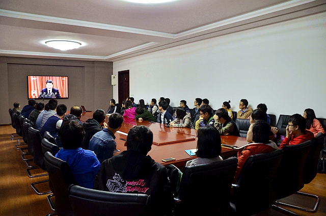 北理工人文与社会科学学院师生认真收听收看党的十九大开幕盛况